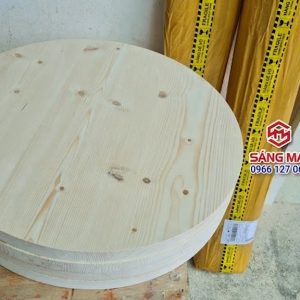 Mặt bàn tròn đường kính 60cm x dày 3cm – Tấm gỗ thông tự nhiên ghép