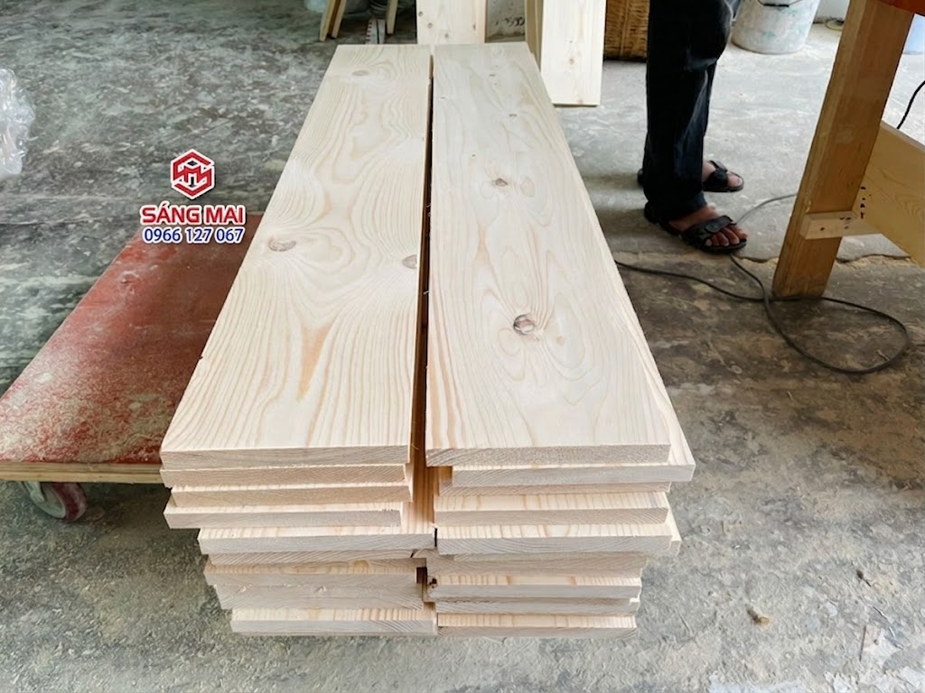 – Gỗ thông mới nhập khẩu: Dài 120cm x mặt rộng 20cm x dày 2cm + gia công láng mịn 4 mặt