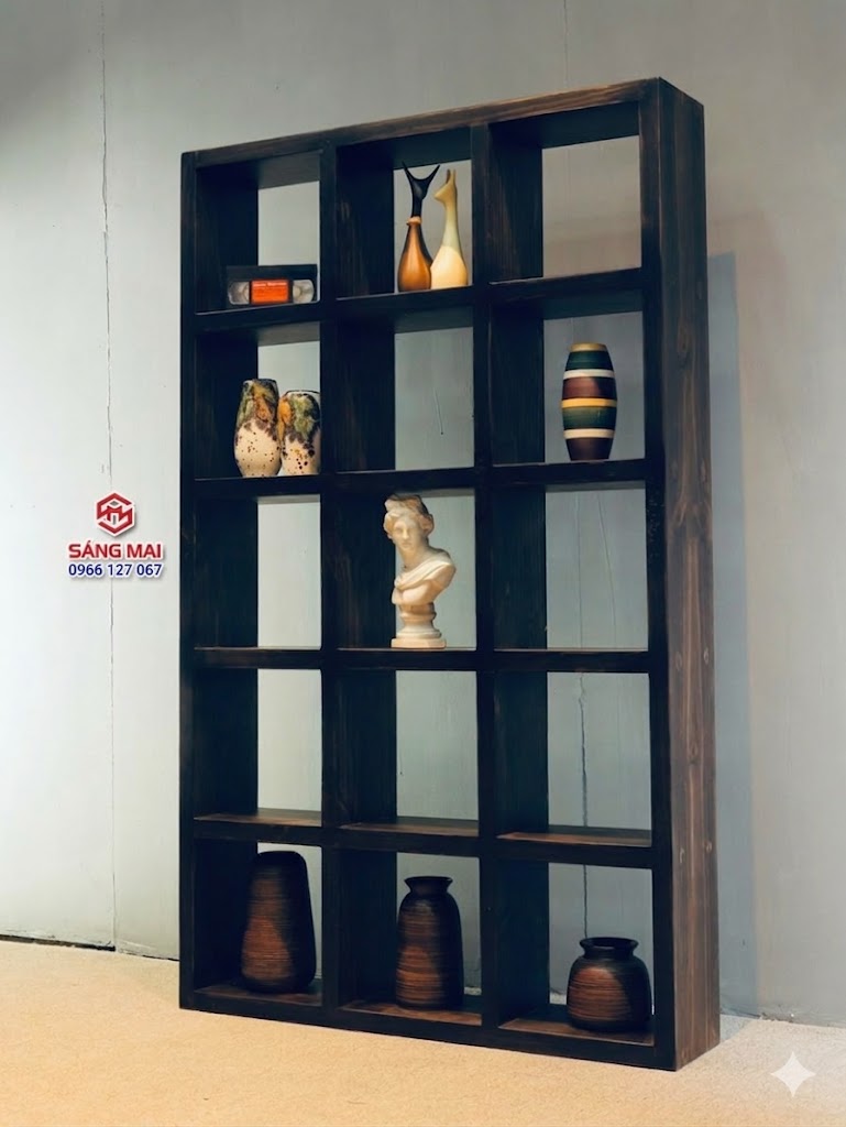 Kệ gỗ trang trí gỗ thông x gỗ dày 4,2cm + Sơn màu đen nhạt