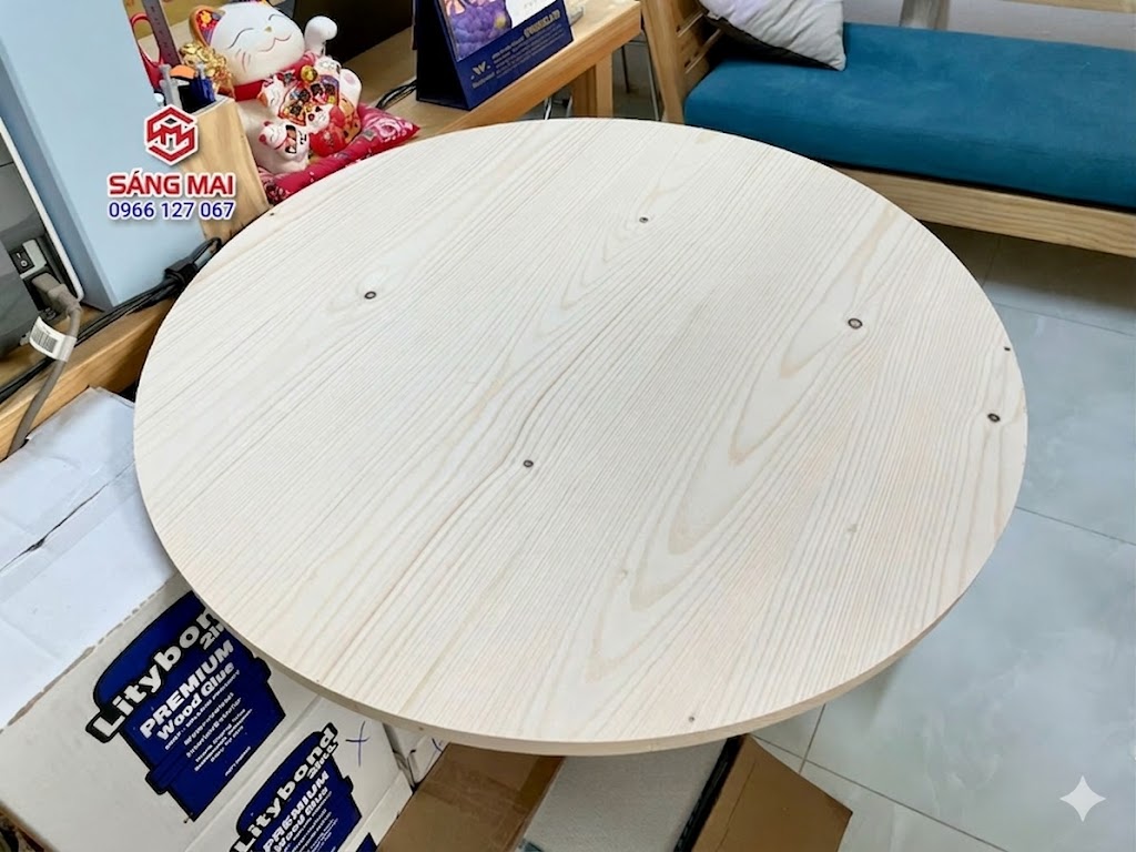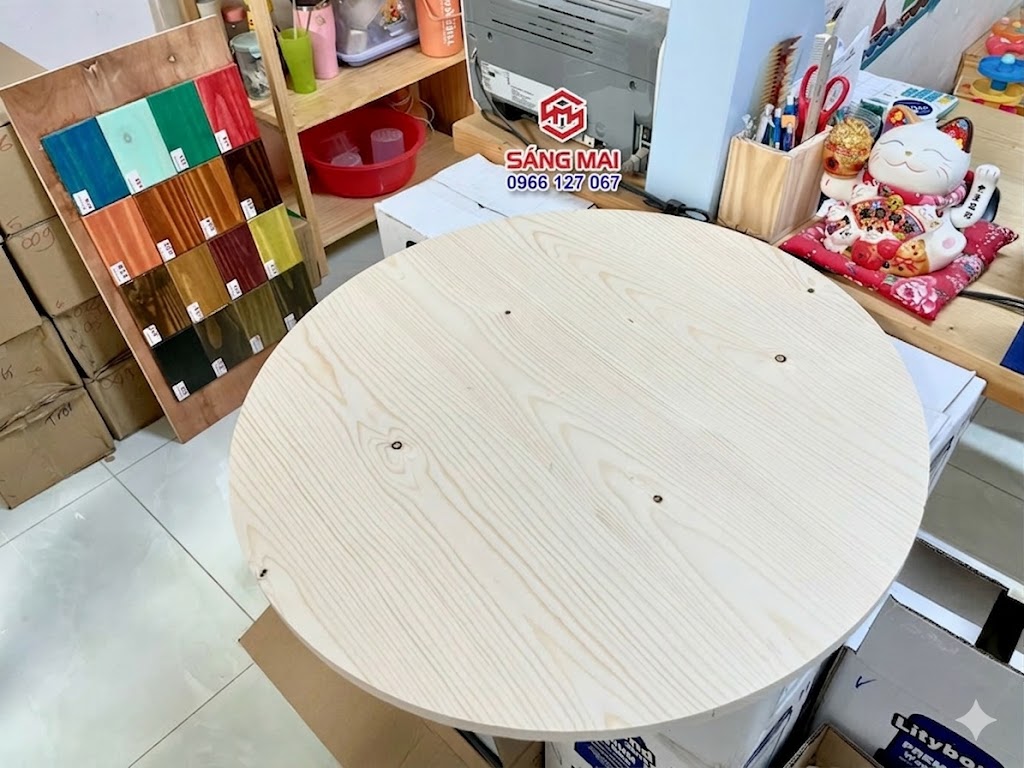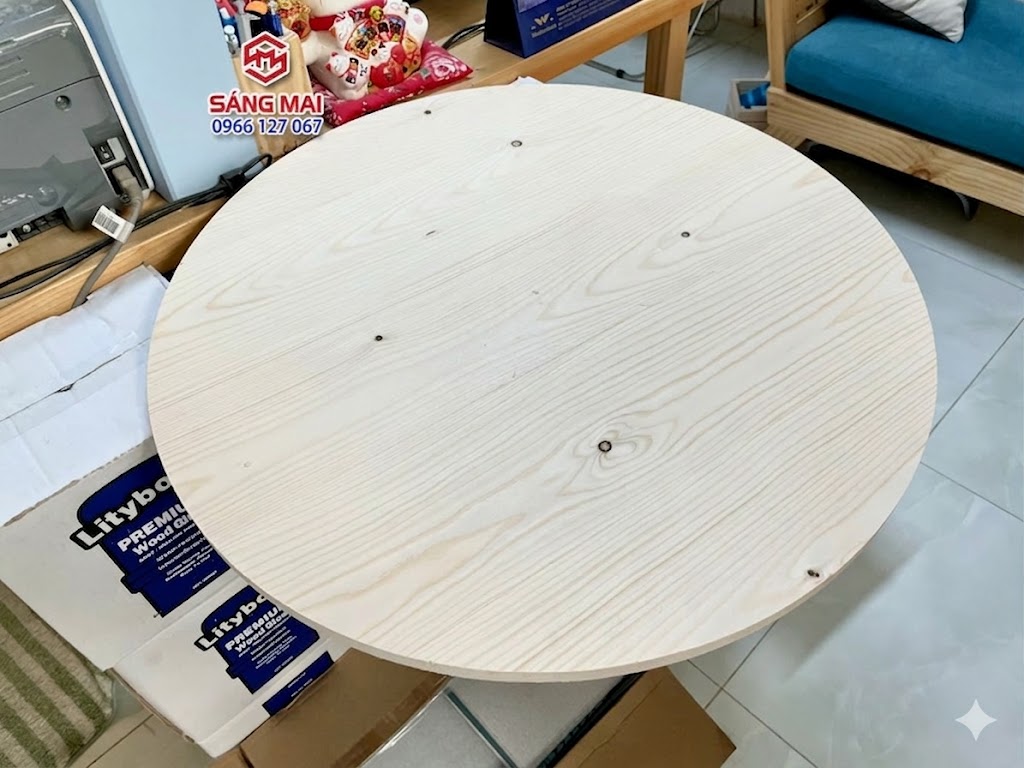 Mặt bàn tròn đường kính 78cm x dày 2cm – Tấm gỗ thông tự nhiên ghép