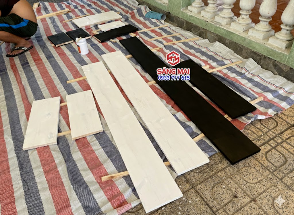 – Bước 3: Phun Sơn Phủ Màu( Wood Paint ).